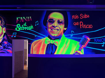 Los murales realistas fluorescentes son obras de arte altamente detalladas que capturan la realidad con gran precisión. La característica distintiva es su uso de colores fluorescentes que brillan en la oscuridad o bajo la iluminación ultravioleta, creando un efecto visual impactante. Estos murales aportan realismo y autenticidad a la decoración, a la vez que infunden energía y un ambiente único. Su versatilidad y capacidad para representar diversos temas y escenarios los convierten en elementos llamativos en discotecas, bares y otros espacios de entretenimiento, atrayendo a la clientela con un impacto visual memorable.